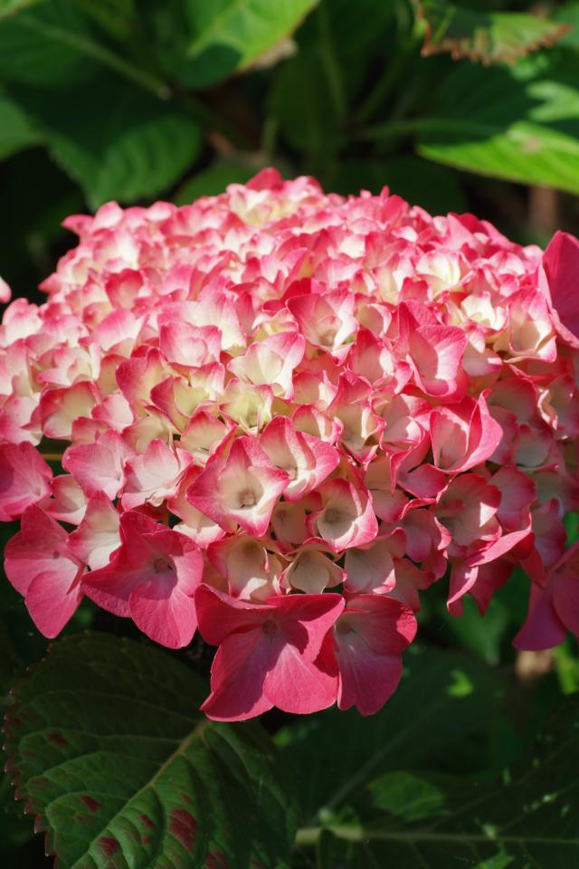 Wallpaper Pink hydrangea on a flowerbed in the sun