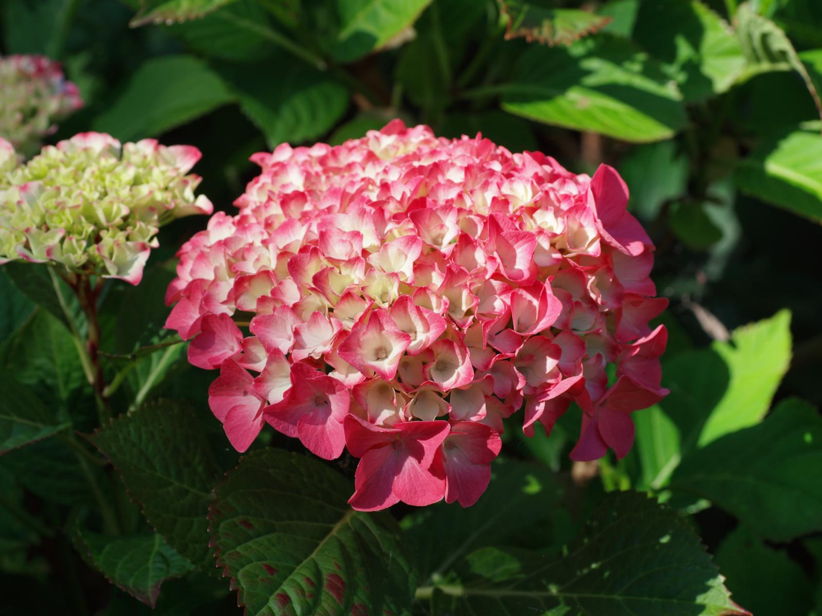 Wallpaper Pink hydrangea on a flowerbed in the sun