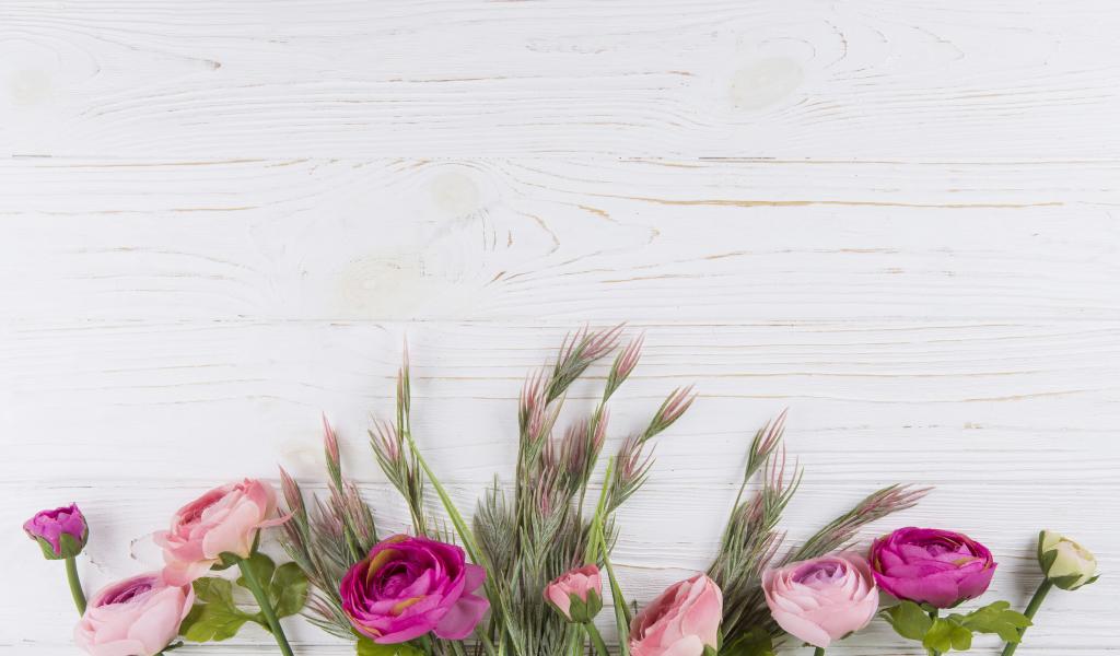 Wallpaper Bouquet of colorful buttercups on a white table