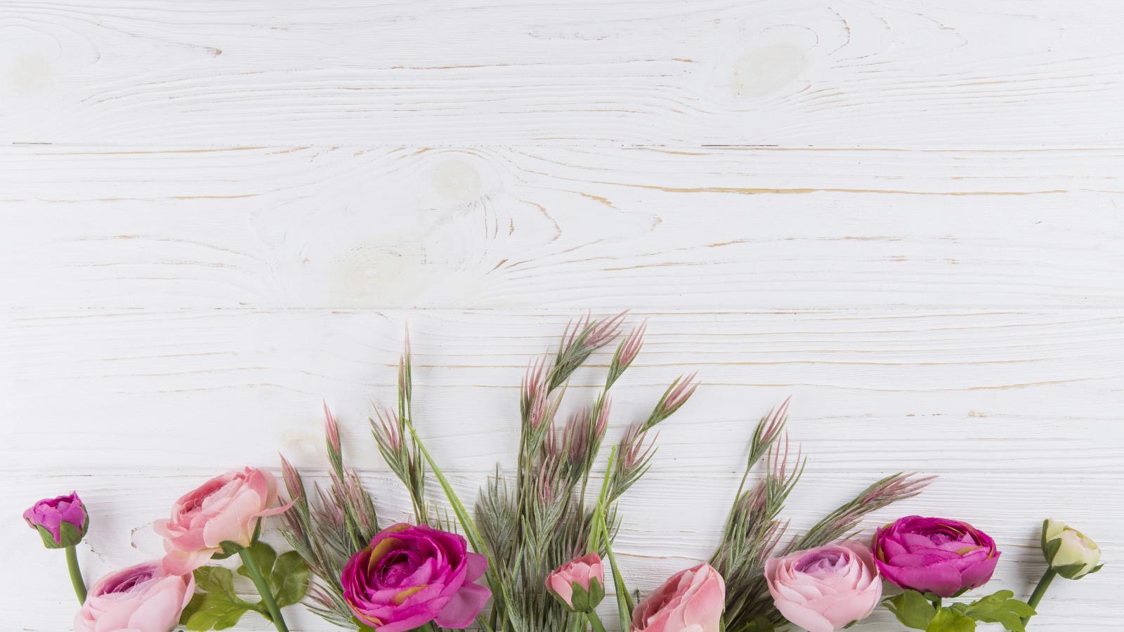 Wallpaper Bouquet of colorful buttercups on a white table