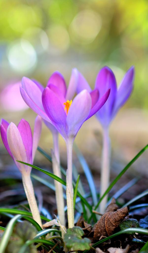 Wallpaper Beautiful delicate lilac crocuses near a tree in spring