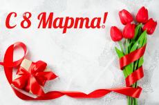 Wallpaper Bouquet of yellow tulips with a ribbon and a gift on a gray background