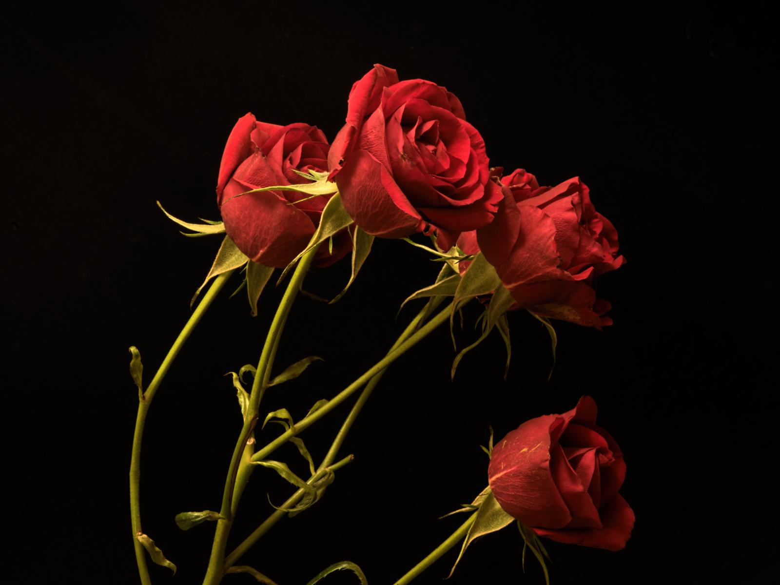 Wallpaper Red small roses on a black background