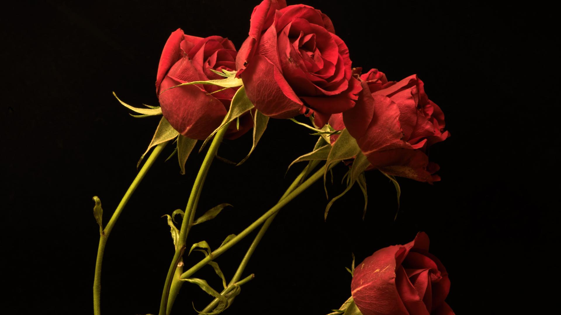 Wallpaper Red small roses on a black background