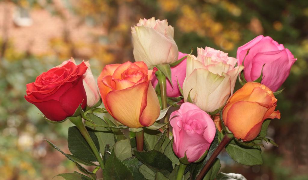 Wallpaper Bouquet of beautiful multi-colored roses close-up