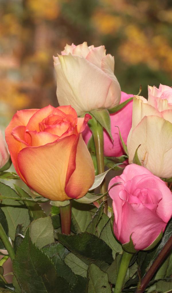 Wallpaper Bouquet of beautiful multi-colored roses close-up