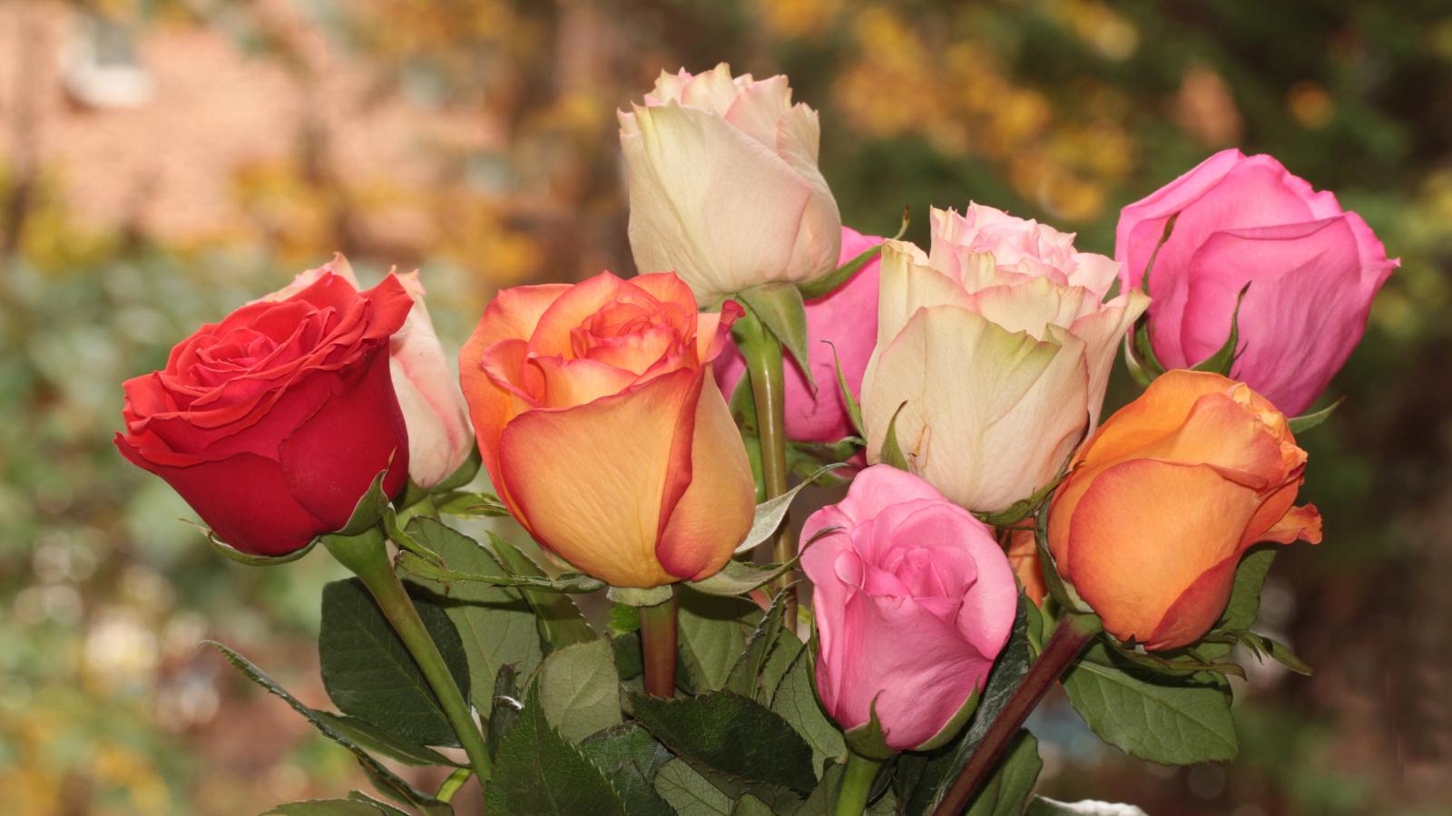 Wallpaper Bouquet of beautiful multi-colored roses close-up