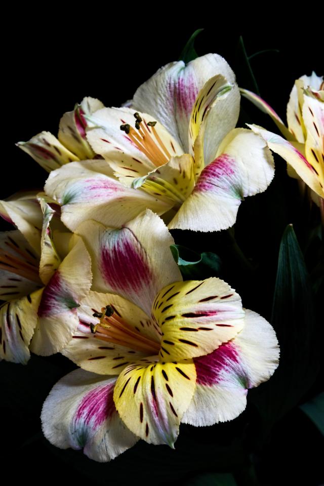 Wallpaper Bouquet of flowers Alstroemeria on a black background.