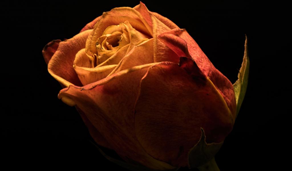 Wallpaper Beautiful orange rose on a black background close-up