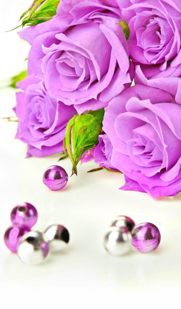 Wallpaper Beautiful lilac roses on a white background with beads