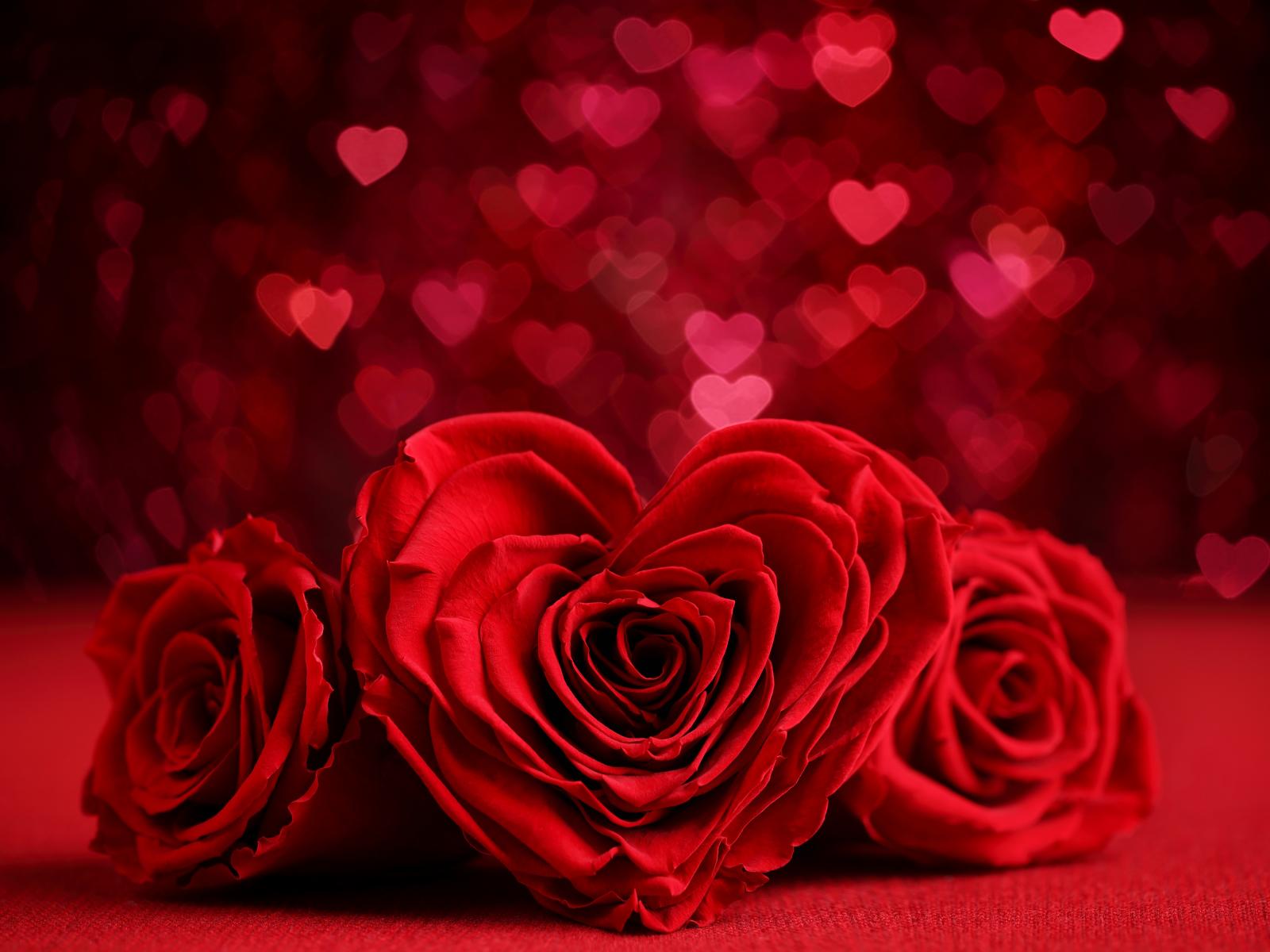 Wallpaper Red rose in the shape of a heart on a background with hearts