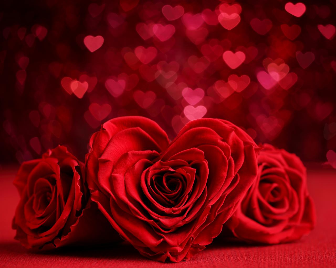 Wallpaper Red rose in the shape of a heart on a background with hearts