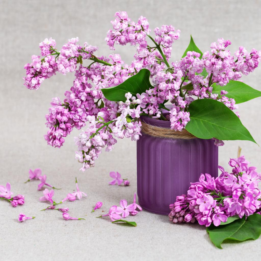 Wallpaper Beautiful lilac in a vase on a gray background