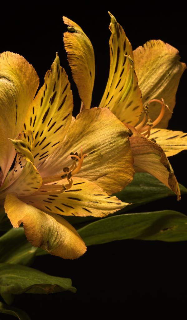 Wallpaper Yellow alstroemeria flower on a black background