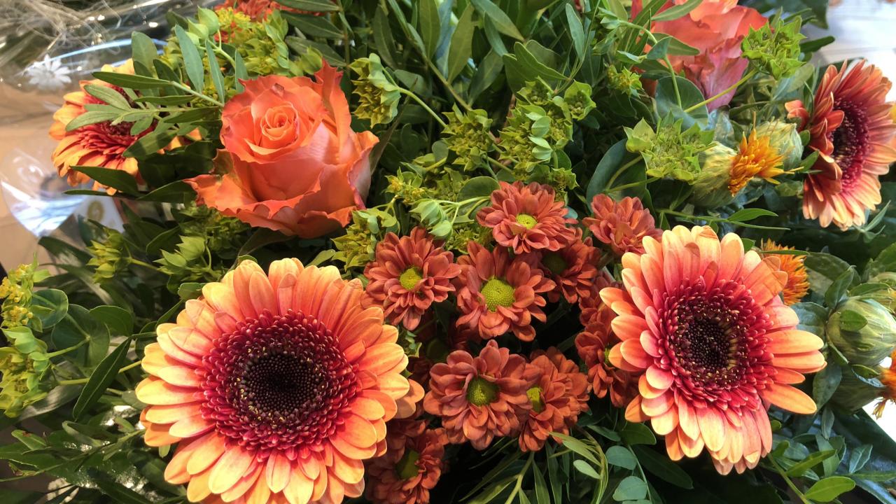 Wallpaper Beautiful orange gerbera with chrysanthemum flowers