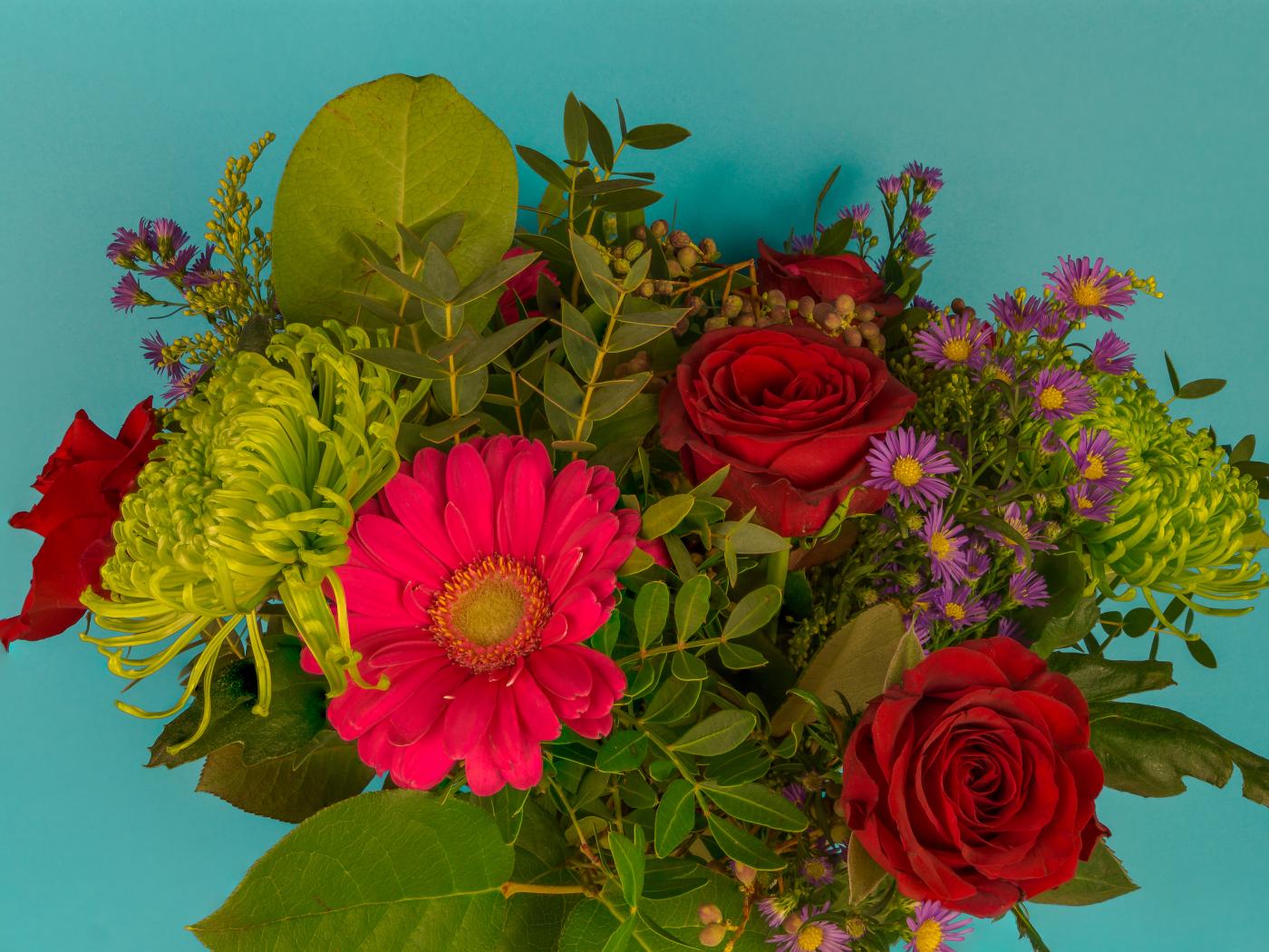 Wallpaper Festive bouquet on a blue background