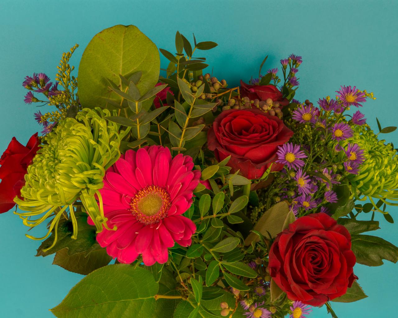Wallpaper Festive bouquet on a blue background