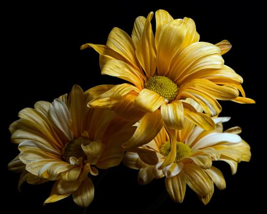 » Wallpaper Yellow chrysanthemum flowers on a black background close-up