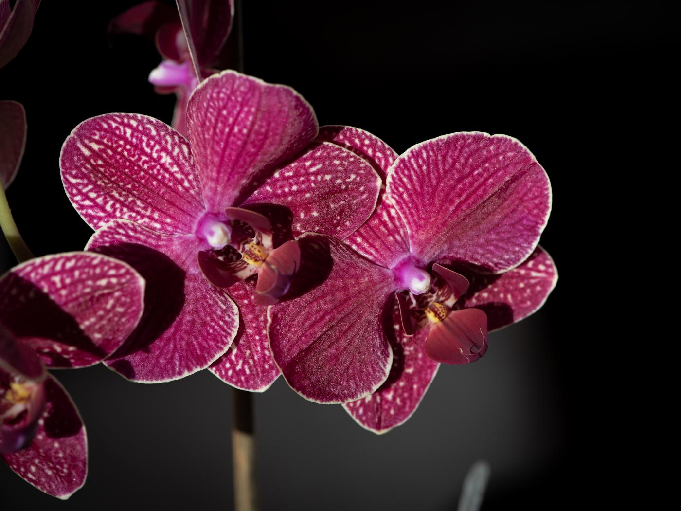 Wallpaper Delicate pink orchids close-up on a black background