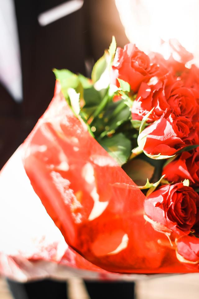 Wallpaper Big beautiful bouquet of red roses in the hands of a man