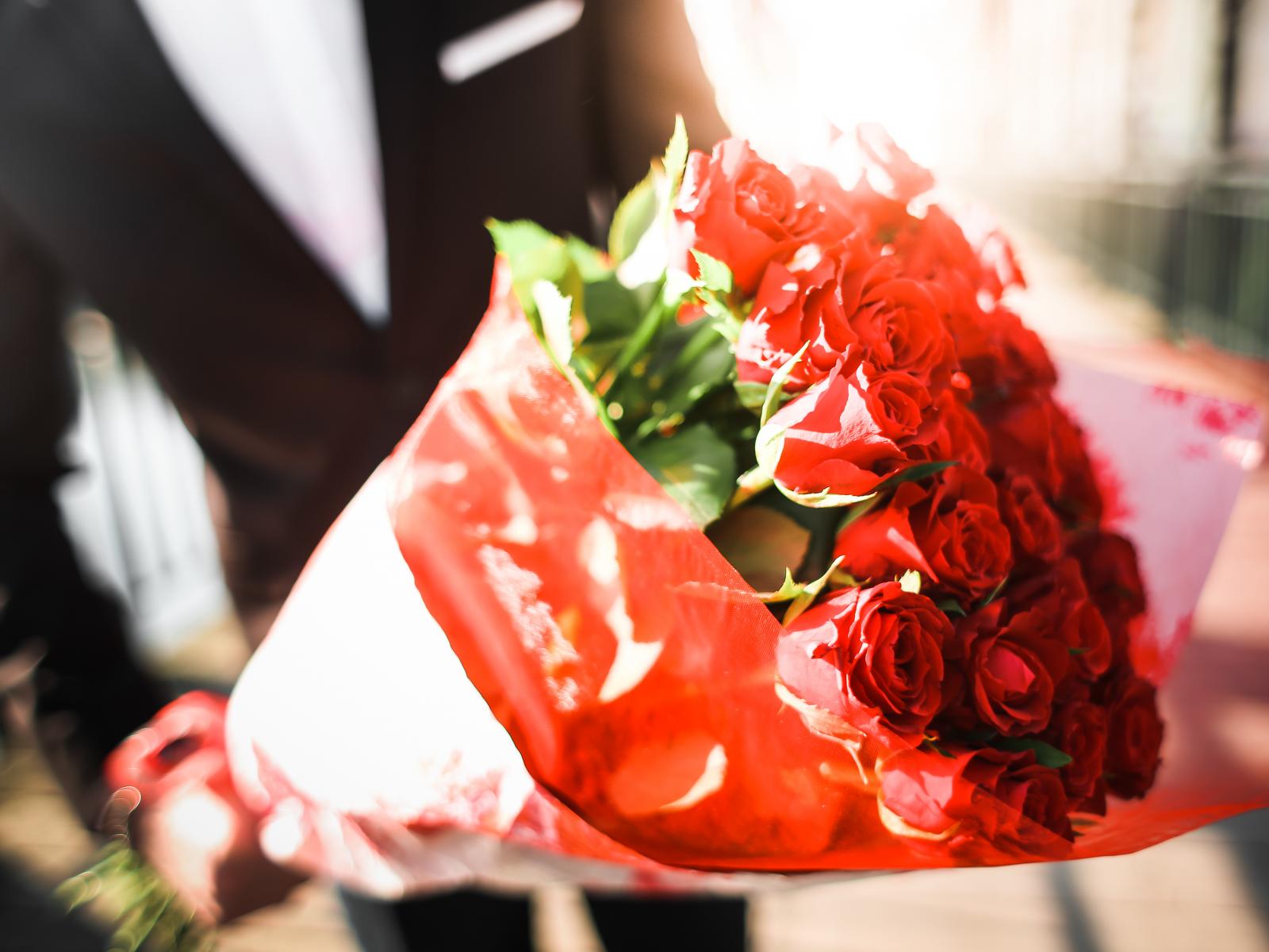 Wallpaper Big beautiful bouquet of red roses in the hands of a man