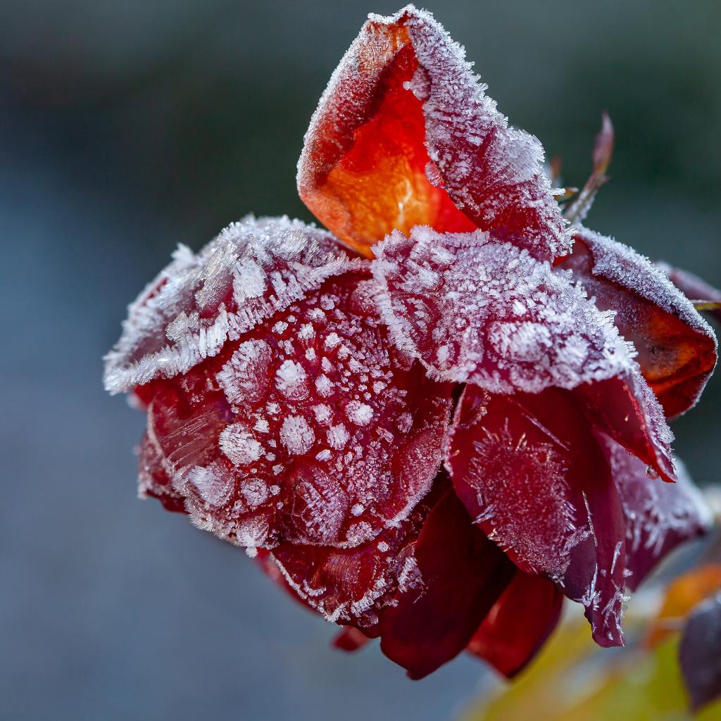 Wallpaper Frosted red rose on a flower bed