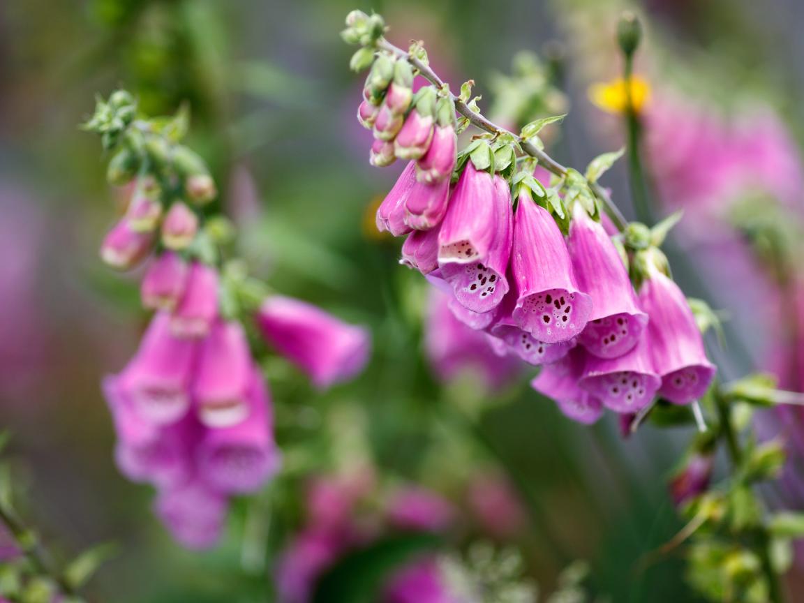 Wallpaper Digitalis digitalis flowers close-up on a flowerbed