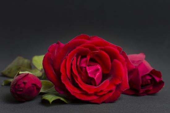 Wallpaper Three red roses on a gray background