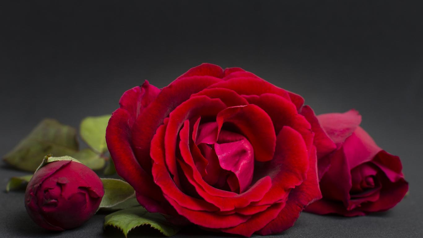 Wallpaper Three red roses on a gray background