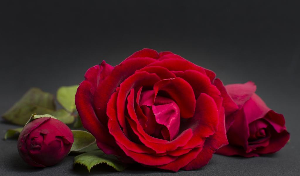 Wallpaper Three red roses on a gray background