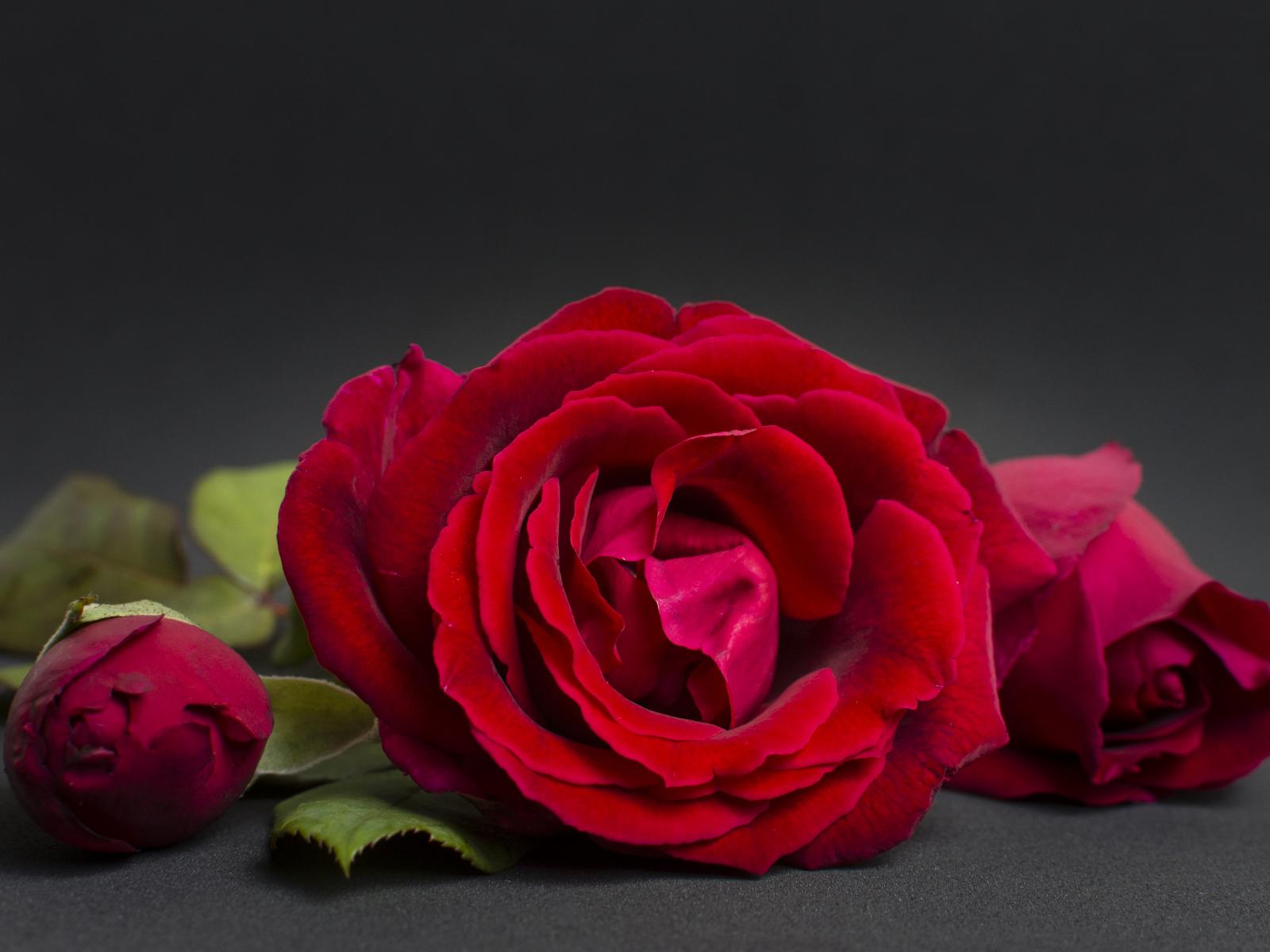 Wallpaper Three red roses on a gray background