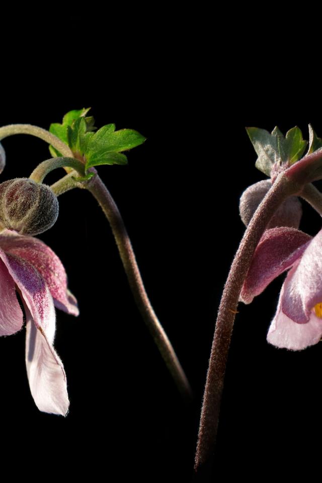 Wallpaper Pink anemone flowers with buds on a black background