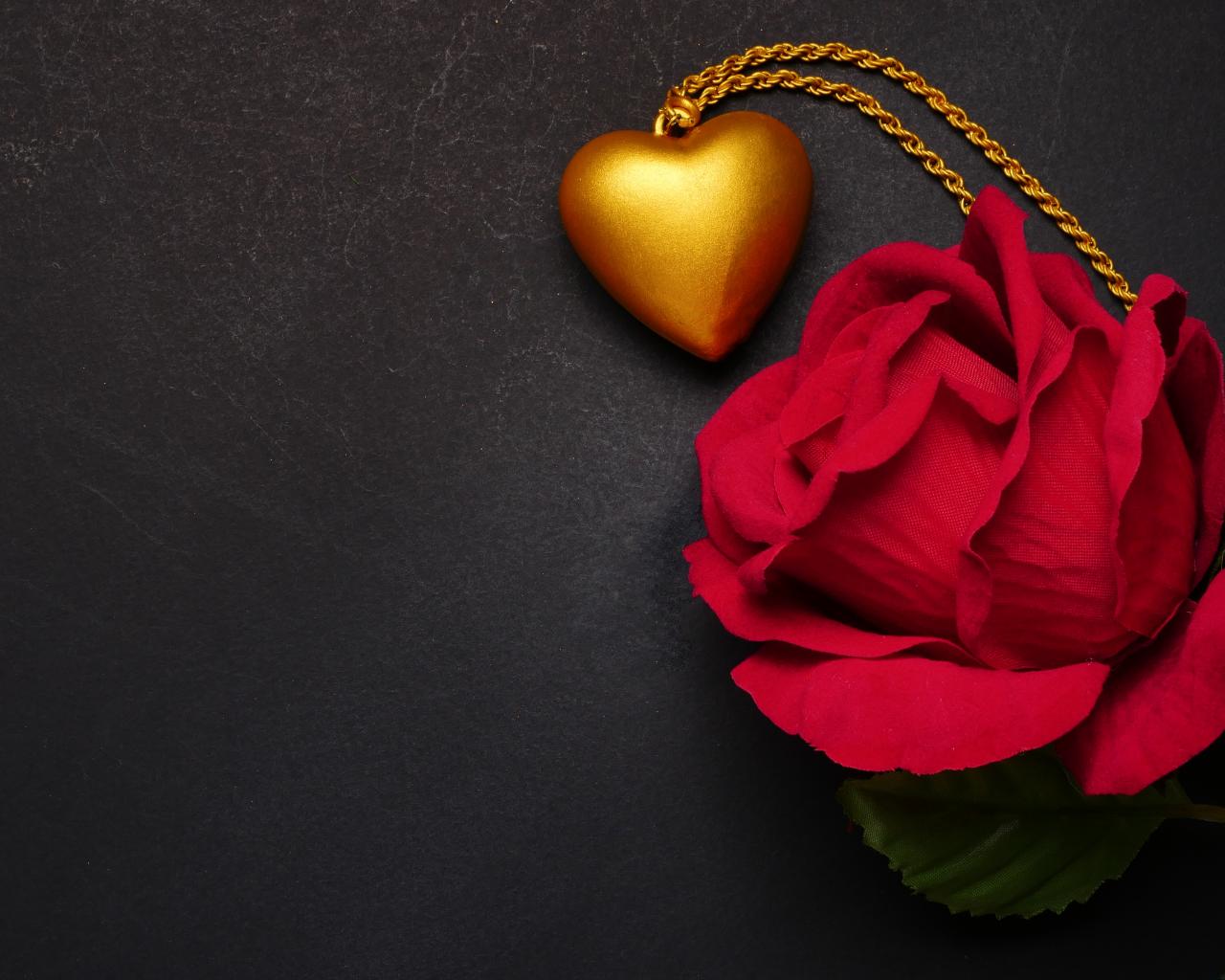 Wallpaper Artificial red rose with a pendant on a gray background