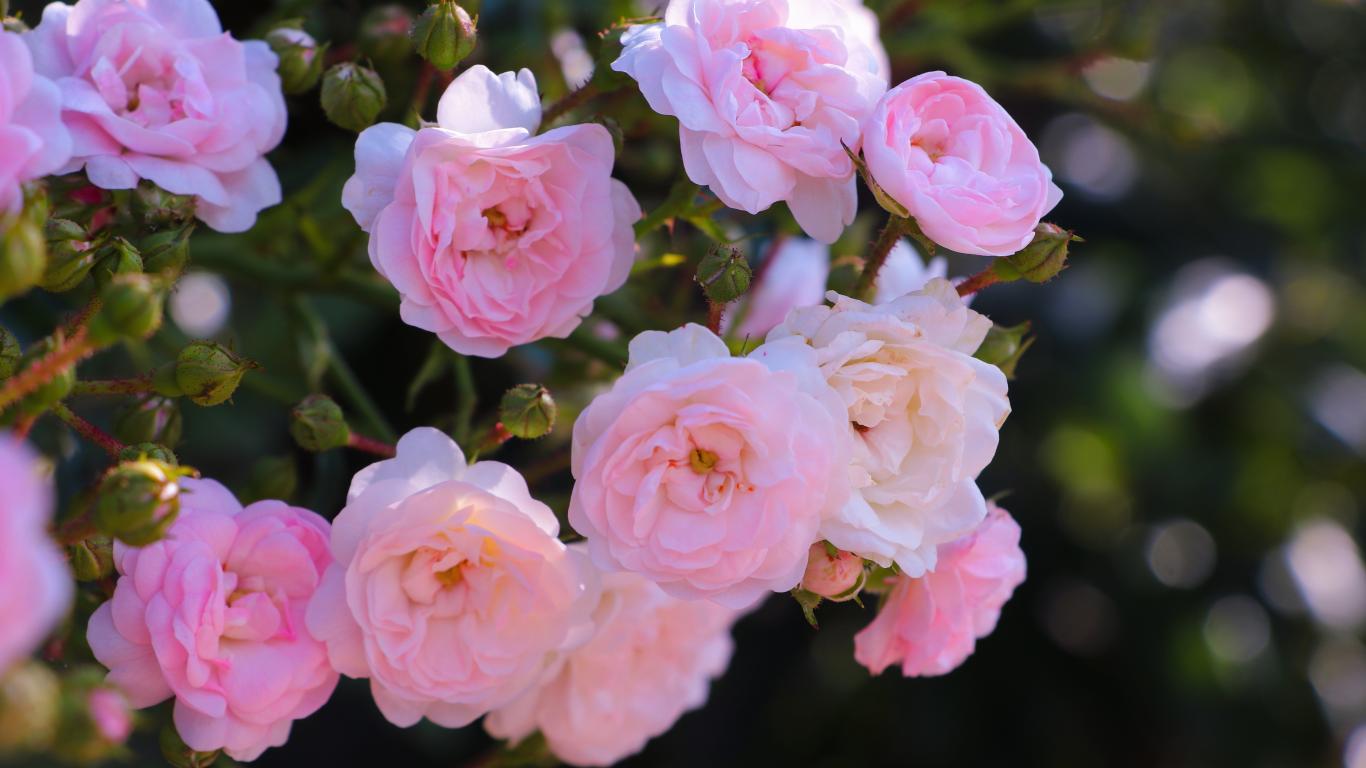 Wallpaper Pink garden rose flowers in the flowerbed