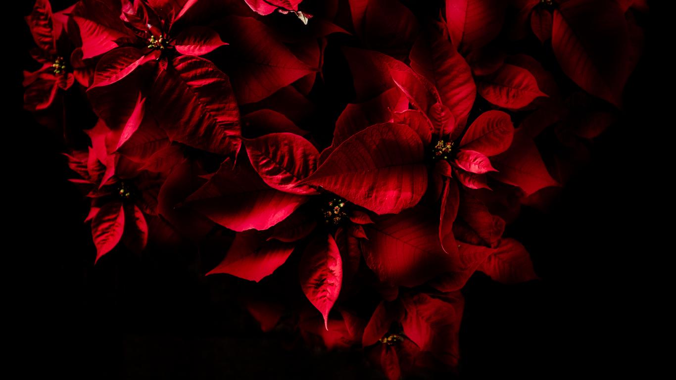 Wallpaper Red leaves of milkweed on a black background