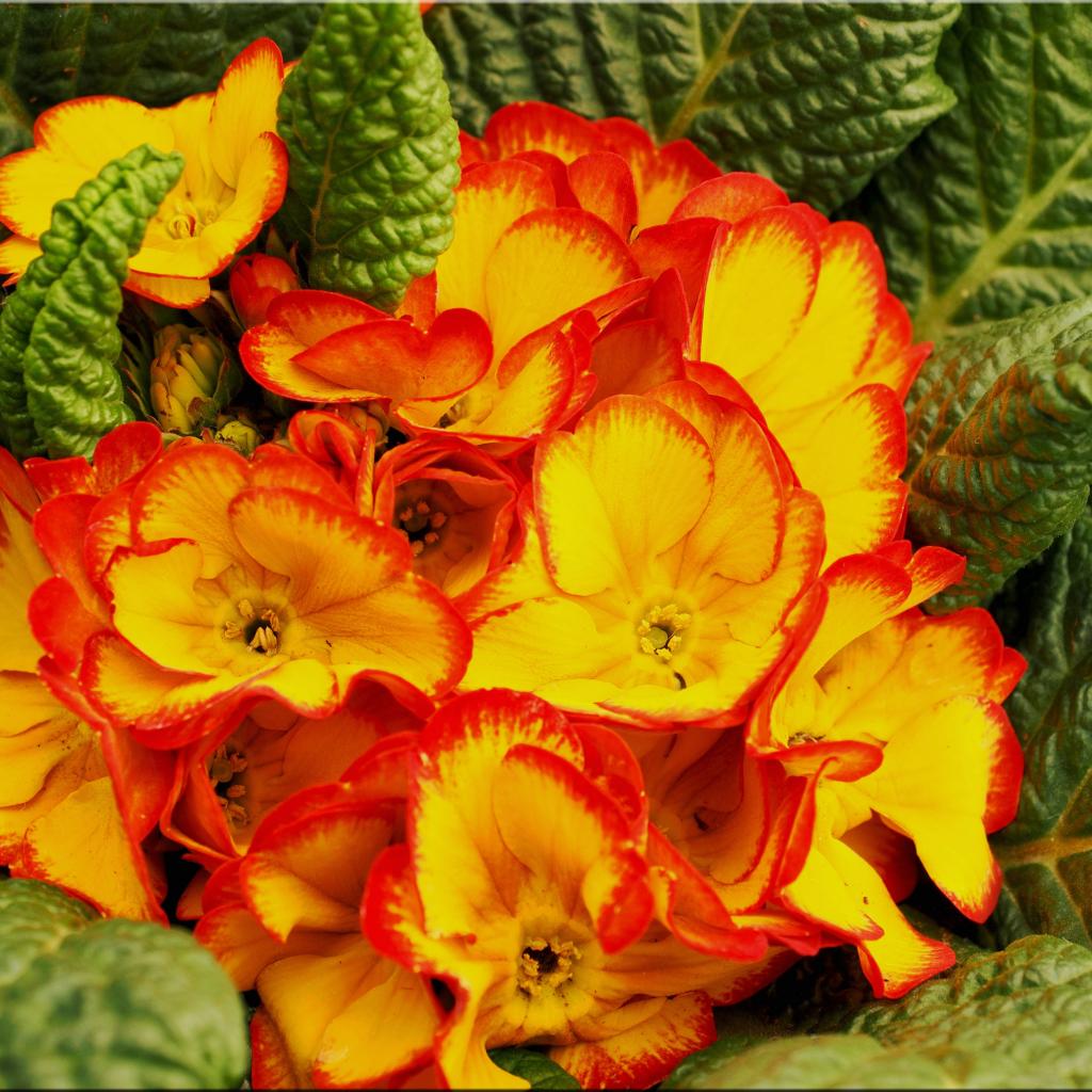 Wallpaper Orange Indoor Primrose Flower with Green Leaves