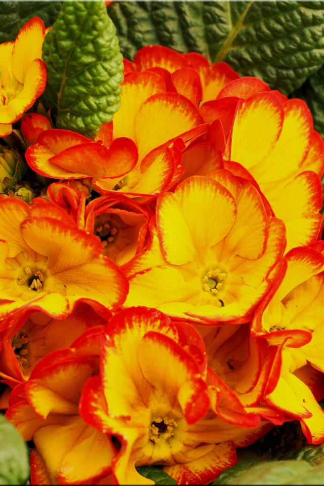 Wallpaper Orange Indoor Primrose Flower with Green Leaves