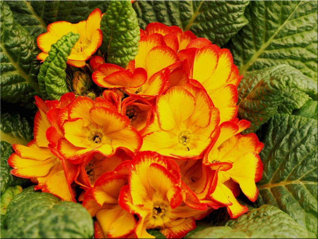 Wallpaper Orange Indoor Primrose Flower with Green Leaves