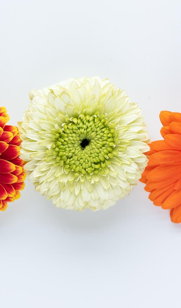 Wallpaper Three multi-colored gerberas on a white background