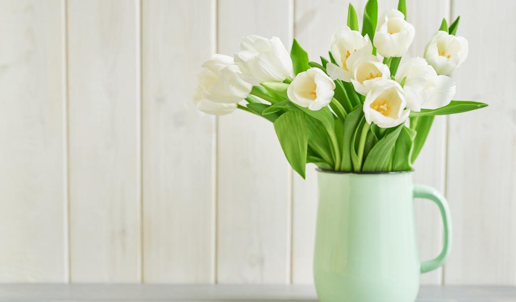 Wallpaper Bouquet of white tulips in a vase on a white background