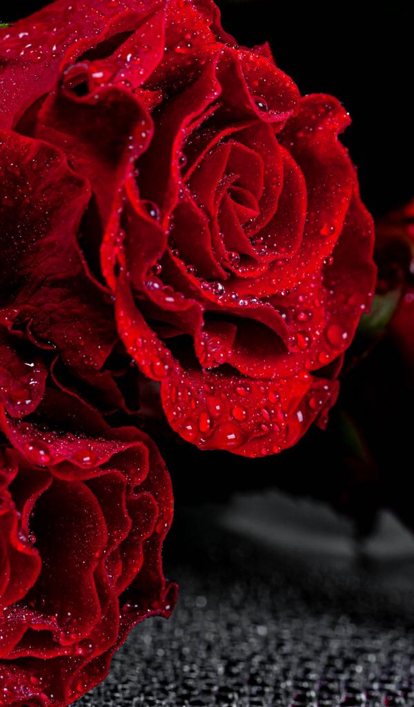 Wallpaper Scarlet roses close-up in drops of water