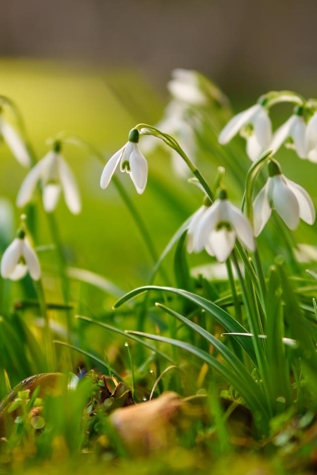 Wallpaper Little white snowdrops on the grass