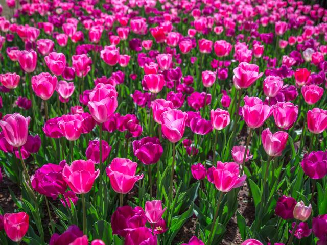 Wallpaper Lots of beautiful pink tulips in the spring flowerbed