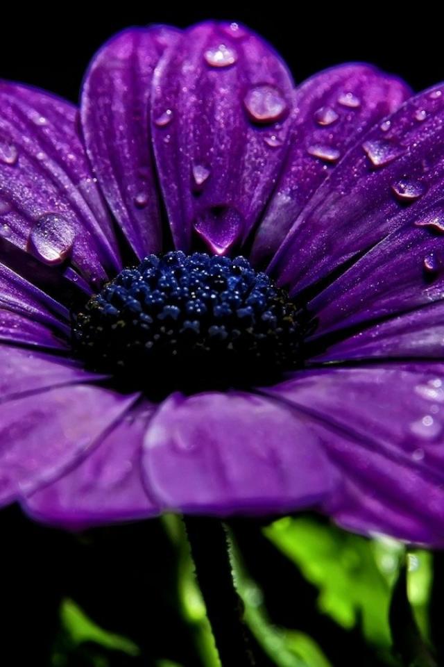 Wallpaper Purple flower with dew drops on the petals