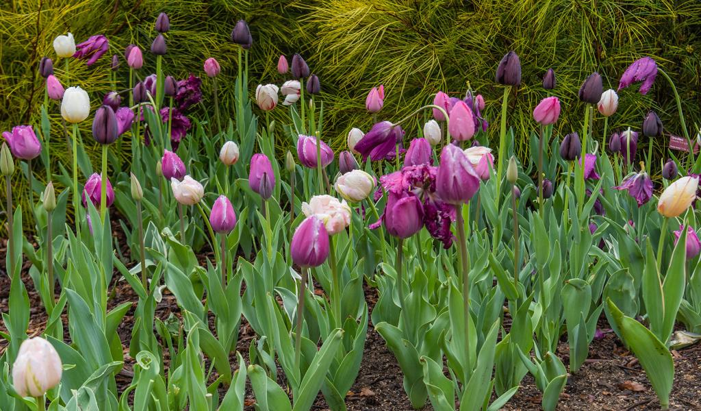 Wallpaper Multi-colored tulips in the flowerbed