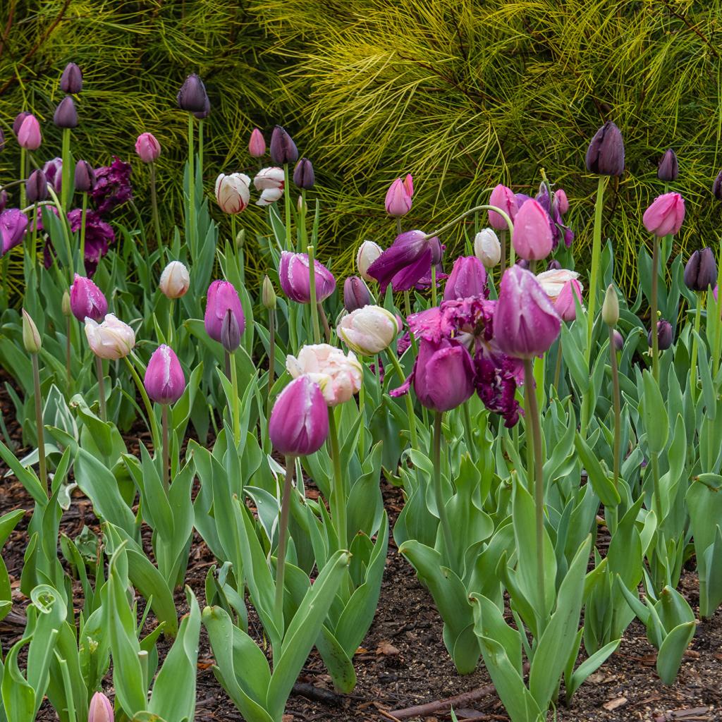 Wallpaper Multi-colored tulips in the flowerbed