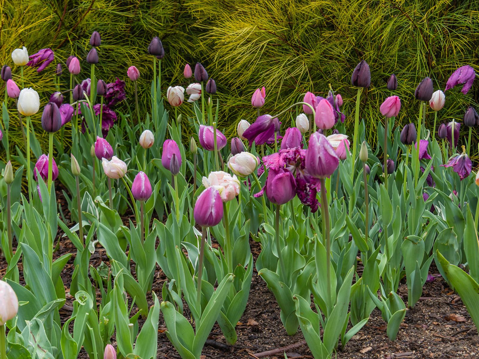 Wallpaper Multi-colored tulips in the flowerbed