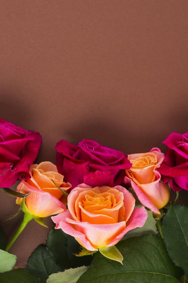 Wallpaper Delicate multi-colored roses on a brown background