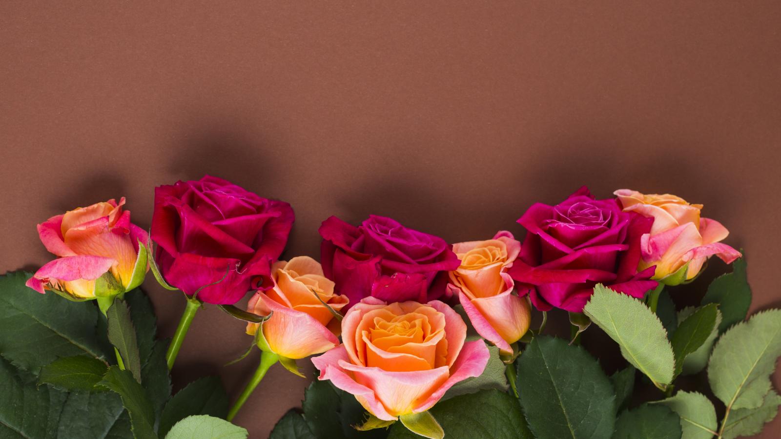 Wallpaper Delicate multi-colored roses on a brown background