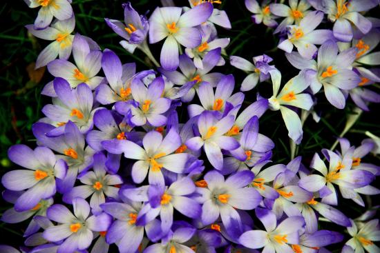 Wallpaper Beautiful delicate lilac crocuses near a tree in spring